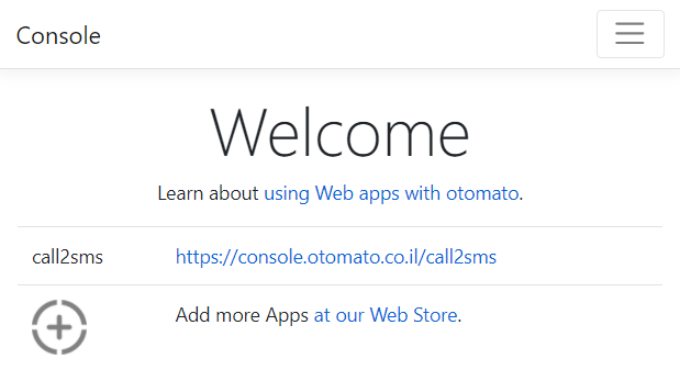 לאחר התחברות יופיע קישור לאפליקציה הרצויה - דוגמא call2sms