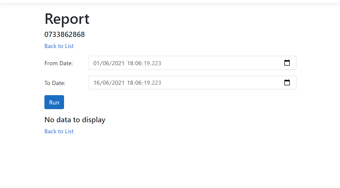 לקבלת דו"ח בתווך תאריכים יש לבחור תאריכים מתאימים וללחוץ על כפתור Run.
